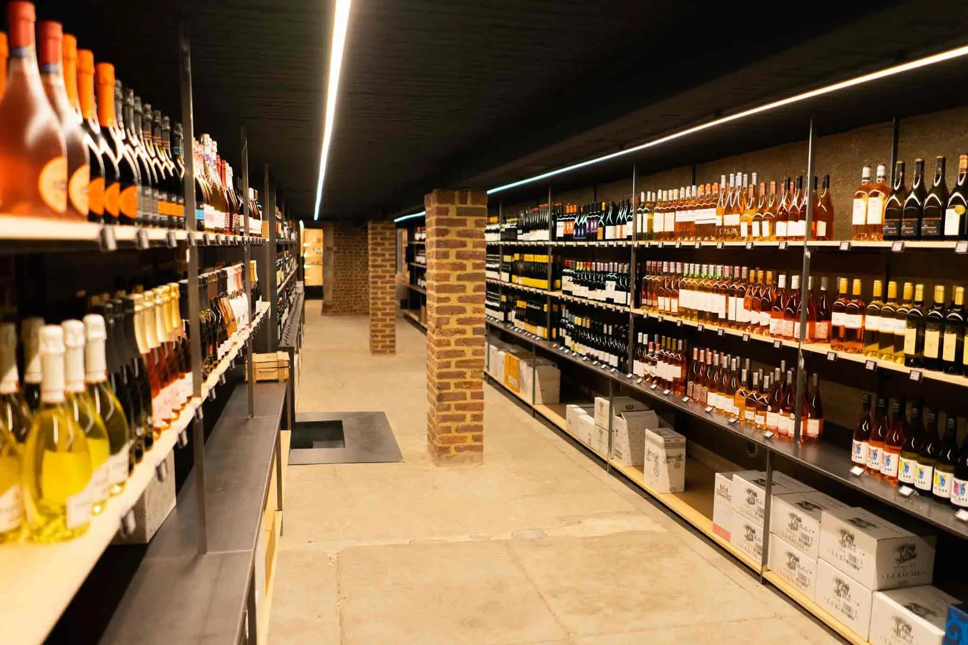 Les caves, où jadis, furent embouteillées les bières Delbruyère, sont maintenant transformées en cave à vins, permettant d’offrir un